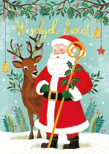 Karnet B6 Boże Narodzenie - Miołaj z reniferem