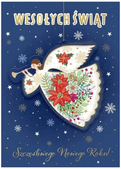 Karnet B6 Boże Narodzenie z zawieszką aniołek