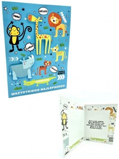 Zdobiony karnet okolicznościowy w formacie B6. Zestaw zawiera kopertę i w środku zamieszczone są życzenia.