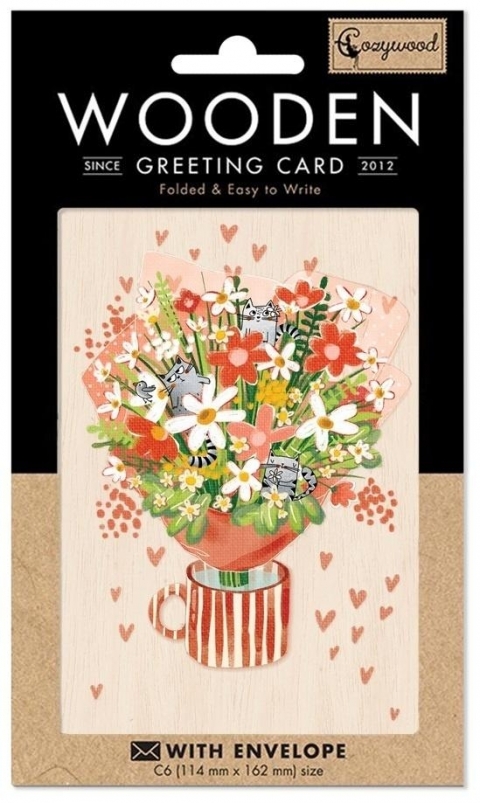 Karnet drewniany C6 + koperta Bukiet z kotami
