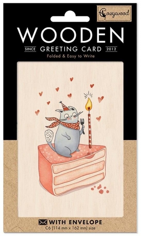 Karnet drewniany C6 + koperta Tort i kot