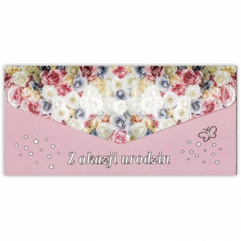 Po złożeniu format kartki DL, wyjątkowe złocenia, w środku życzenia i kieszonka na pieniądze. Dodatkowa koperta