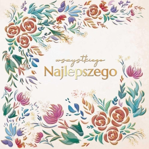 Karnet kwadratowy 15 x 15 cm. Złocony i tłoczony, teksy życzeń w środku. Wydrukowany na wysokiej jakości papierze. W zestawie koperta.