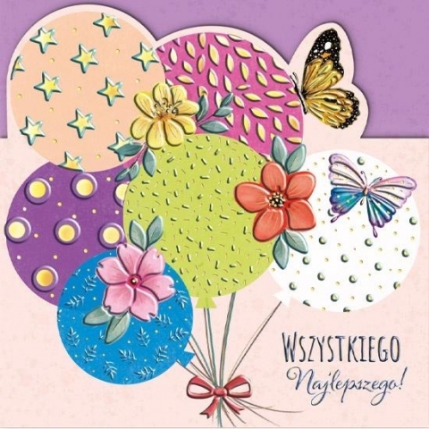Karnet KW wycinany Urodziny - Balony z motylami