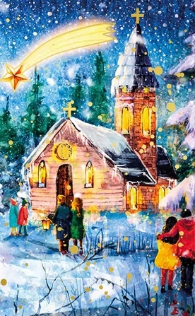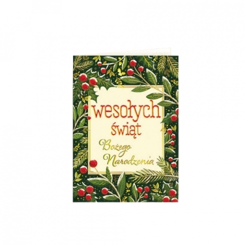 MINI Karnet w formacie 11,6 x 8,1 cm, złożony 5,8 x 8,1 cm. Wydrukowany na wysokiej jakości papierze, uszlachetniony złotem. Mini karnet z grafiką w środku. Zamknięty w woreczek foliowy z kopertą.