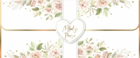 Ekskluzywny karnet ze złoceniem lub srebrzeniem, wykonany na perłowym papierze z dużą ilością dodatków