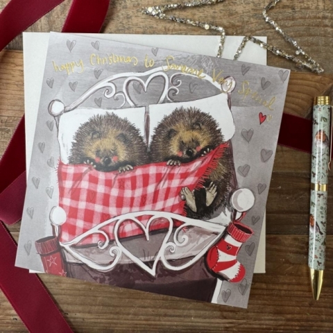 Karnet Święta kwadrat Jeże pod kocem