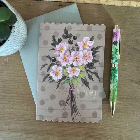 Wycinany karnet z kopertą, wewnątrz bez tekstu. Wyprodukowany w Wielkiej Brytanii.