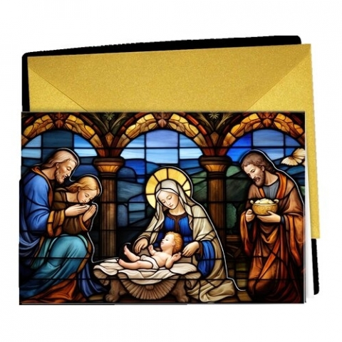 Kartka z życzeniami z dopasowaną kolorystycznie kopertą. Ozdobę stanowi złocenie i elementy 3D. Całość zabezpieczona folią typu"open".