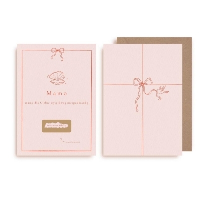 Kartka dwustronnie zadrukowana, w komplecie z kopertą w stylu kraft.