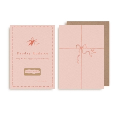 Kartka dwustronnie zadrukowana, w komplecie z kopertą w stylu kraft.
