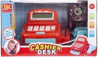 Zalety produktu: kasa posiada efekty dźwiękowe oraz świetlne, słuchawka połączona jest z kasą sznureczkiem. Poprzez zabawę w sklep, dziecko może w łatwy i przyjemny sposób nauczyć się zasad robienia zakupów, wartości pieniądza, odliczać i wydawać resztę. Dzieci uwielbiają edukacyjne zabawy, których mogą naśladować dorosłych! Zawartość zestawu: Wymiary/waga/baterie: wymiary produktu kasa (dł. x wys. x gł.) [cm]: 20x9x14, wymiary opakowania (dł. x wys. x gł.) [cm]: 24,5x14,5x17,5 waga produktu bez opakowania [kg]: 0,19 kg, waga produktu w opakowaniu [kg]: 0,39kg, wymaga zasilnia bateriami 2 x AALR- nie załączono do zestawu. Zabawka przeznaczona dla dzieci w wieku: 3+.Dodatkowo w zestawie są dwa produkty imitujące art. spożywcze(ciastka i czekolada) Pakowane w kartonik z okienkiem