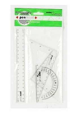 Plastikowy komplet geometryczny składający się z 4 elementów.