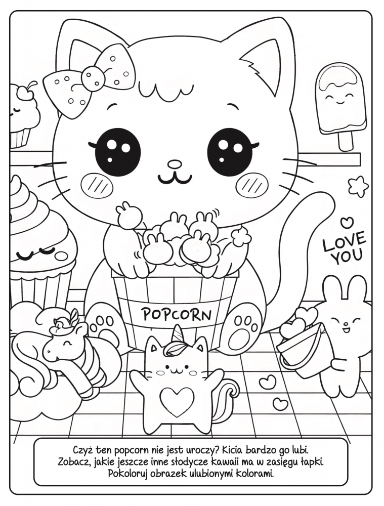 Witaj w kolorowym świecie kawaii, krainie najsłodszych i najzabawniejszych postaci, które zawsze wyglądają uroczo i trudno im się oprzeć. Dziś zapraszają cię do wspólnej przygody. Dzięki tej kolorowance z naklejkami możesz zamienić zwykły dzień w wesołą, barwną opowieść. Koloruj, śmiej się i baw się świetnie!