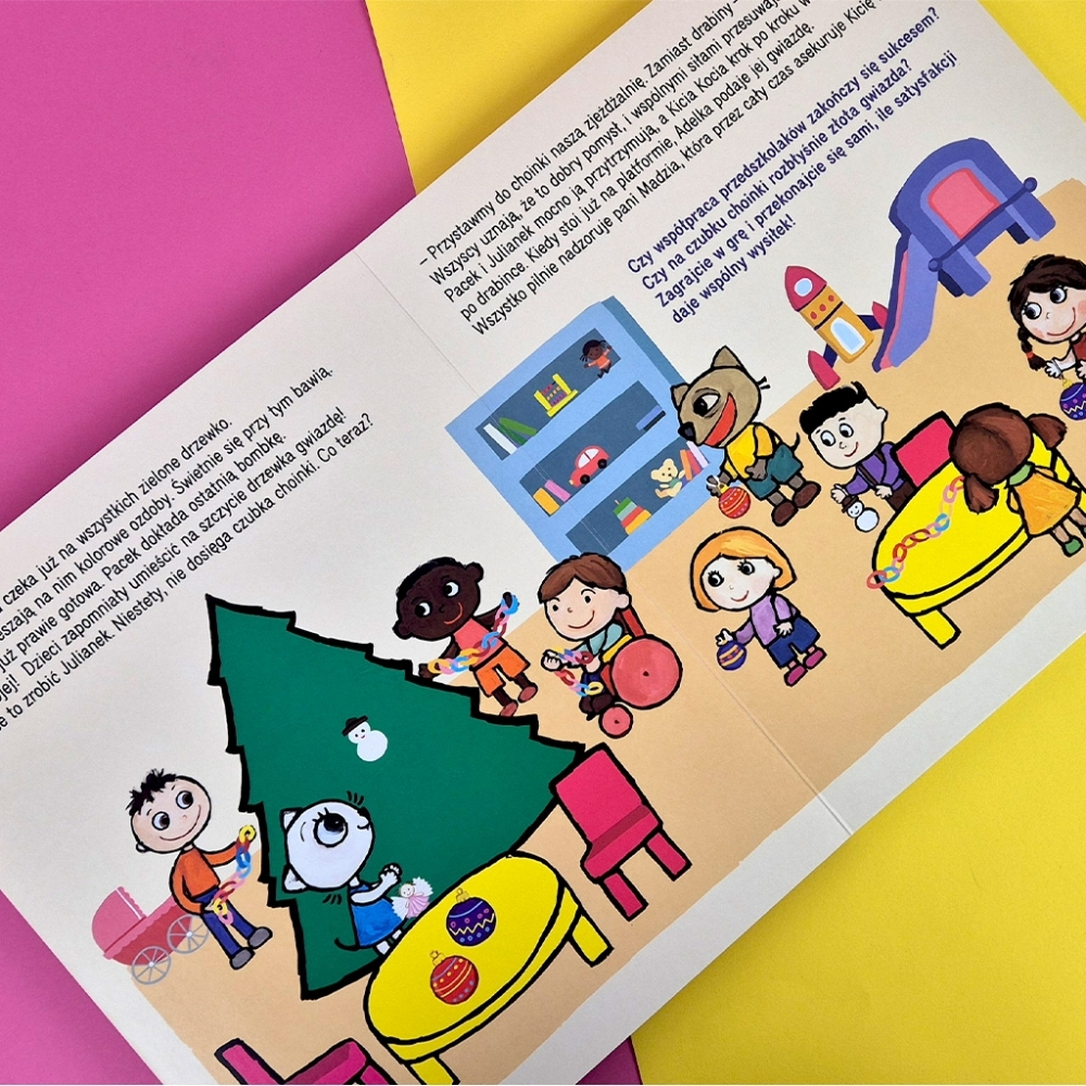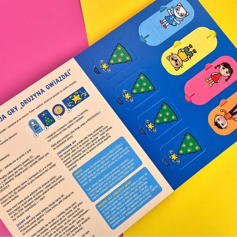 Świątecznej historyjce towarzyszy gra, która stanowi idealne wprowadzenie do świata planszówek. Rozgrywka jest krótka, a zasady proste. Gra nie wywołuje nadmiernej frustracji i nie prowokuje do niezdrowej rywalizacji. Zachęca do współpracy i koncentracji. Dzieci ćwiczą spostrzegawczość, liczenie, małą motorykę i myślenie strategiczne.