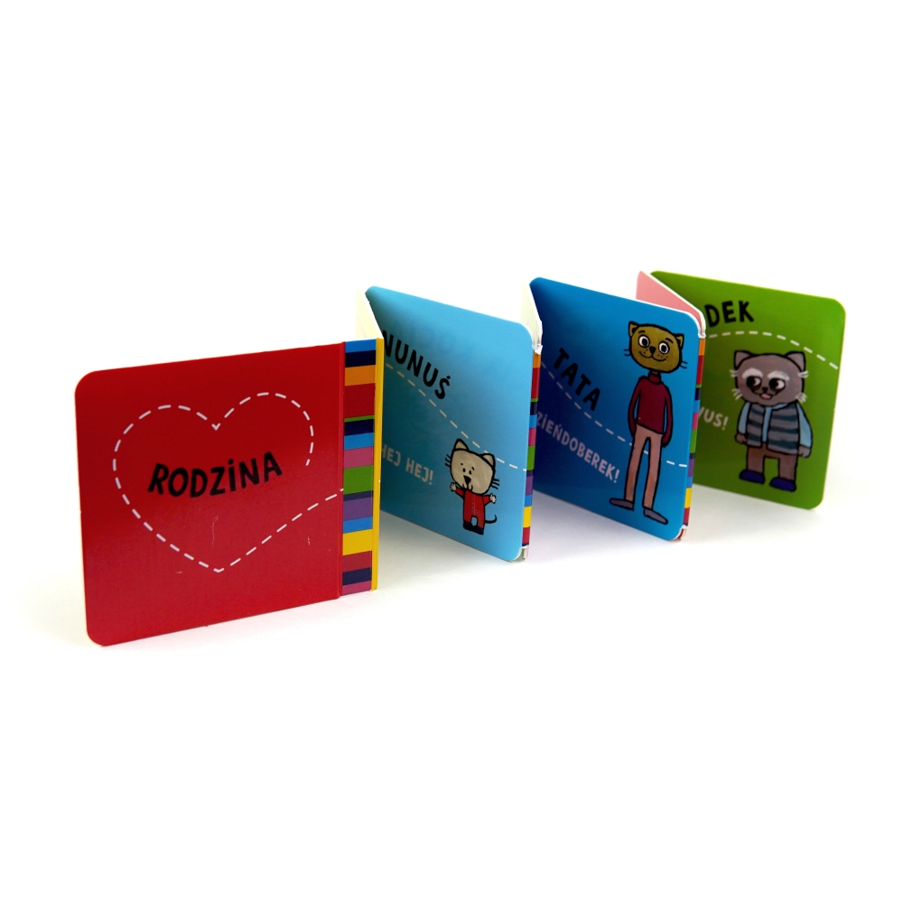 Książeczka harmonijka dla najmłodszych. Barwne ilustracje zachęcają do mówienia i pokazywania.