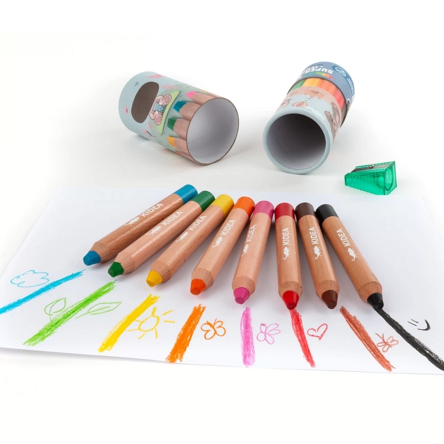 Kidea, Kredki Super Jumbo, 8 kolorów + temperówka