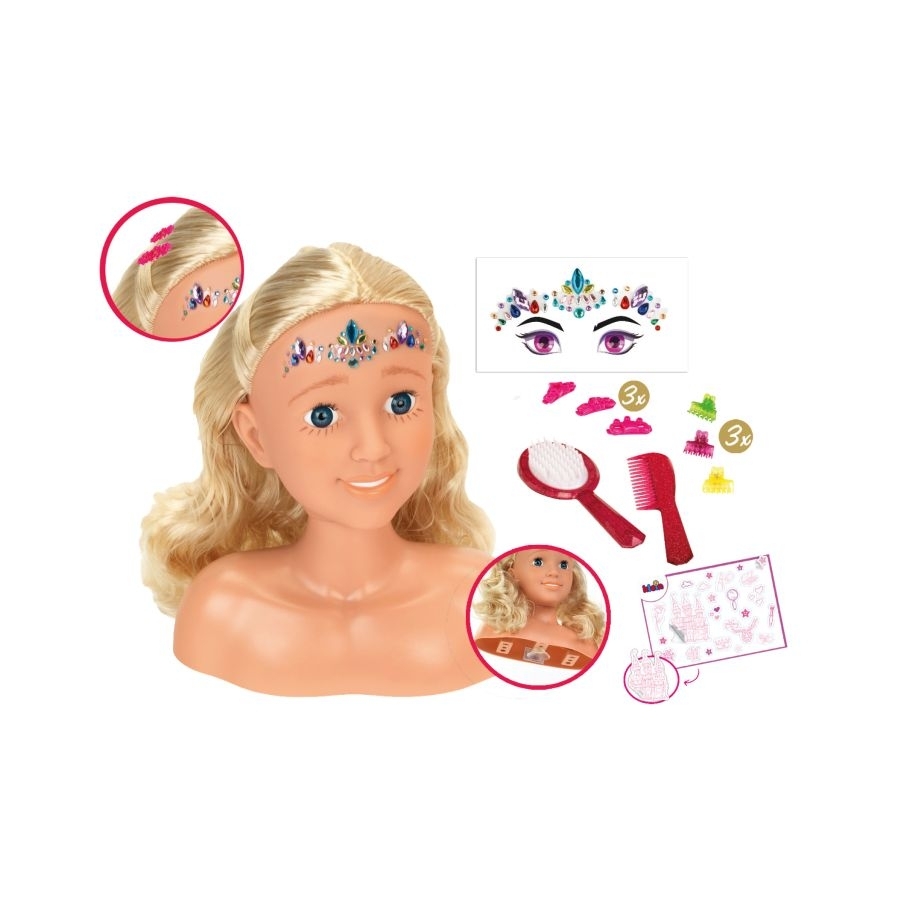 Nie tylko dla fanek księżniczek! Fanki fryzur i makijażu również pokochają tę śliczną głowę i wszystko, co się z nią wiąże. W końcu nie tylko wszystkie akcesoria wyglądają jak w prawdziwym salonie piękności, ale można je również wykorzystać do stworzenia praktycznie każdego makijażu. Oprócz kreatywności i sprawności motorycznej, ta zabawka ćwiczy również pewność siebie i poczucie własnego stylu. Z miłością zaprojektowane akcesoria obejmują trzy spinki do włosów, grzebień, szczotkę, arkusz naklejek oraz kosmetyczne serce z kosmetykami testowanymi dermatologicznie.