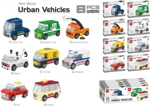 Przenieś się w świat miejskich przygód z zestawem klocków Mini Block "Urban Vehicles"! To wyjątkowa kolekcja ośmiu precyzyjnie wykonanych modeli, które wiernie odwzorowują pojazdy spotykane na ulicach miast. W skład zestawu wchodzą: solidna ciężarówka, ekologiczna śmieciarka, potężna ciężarówka budowlana, wszechstronna laweta, wygodny autobus turystyczny, szybka karetka pogotowia, klasyczna taksówka oraz przestronny autobus miejski. Każdy z tych pojazdów to osobny zestaw klocków, zapakowany indywidualnie, co sprawia, że idealnie nadają się do kolekcjonowania lub jako drobny upominek. Zestaw Mini Block "Urban Vehicles" to doskonała propozycja dla małych konstruktorów, rozwijająca zdolności manualne, kreatywność i wyobraźnię.