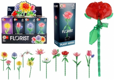 Zestawy konstrukcyjne z serii Kwiatki to połączenie kreatywnej zabawy z artystycznym pięknem natury. Każdy komplet pozwala samodzielnie zbudować wyjątkowy model rośliny z drobnych, przezroczystych elementów, które po złożeniu tworzą efektowną, połyskującą kompozycję przypominającą szklaną rzeźbę.