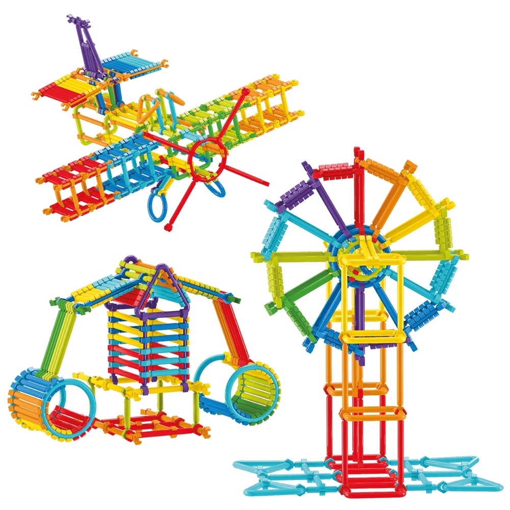 Podczas zabawy dziecko naturalnie rozwija zdolności manualne, koordynację ręka–oko oraz wyobraźnię przestrzenną. Łączenie elementów uczy planowania, logicznego myślenia i cierpliwości, a także wspiera koncentrację.
