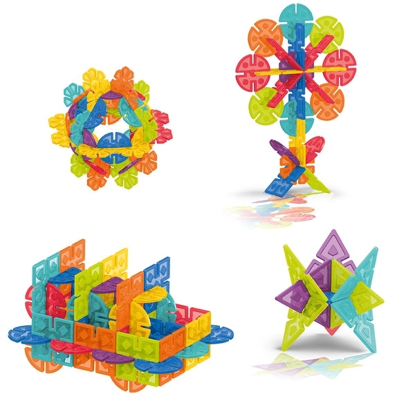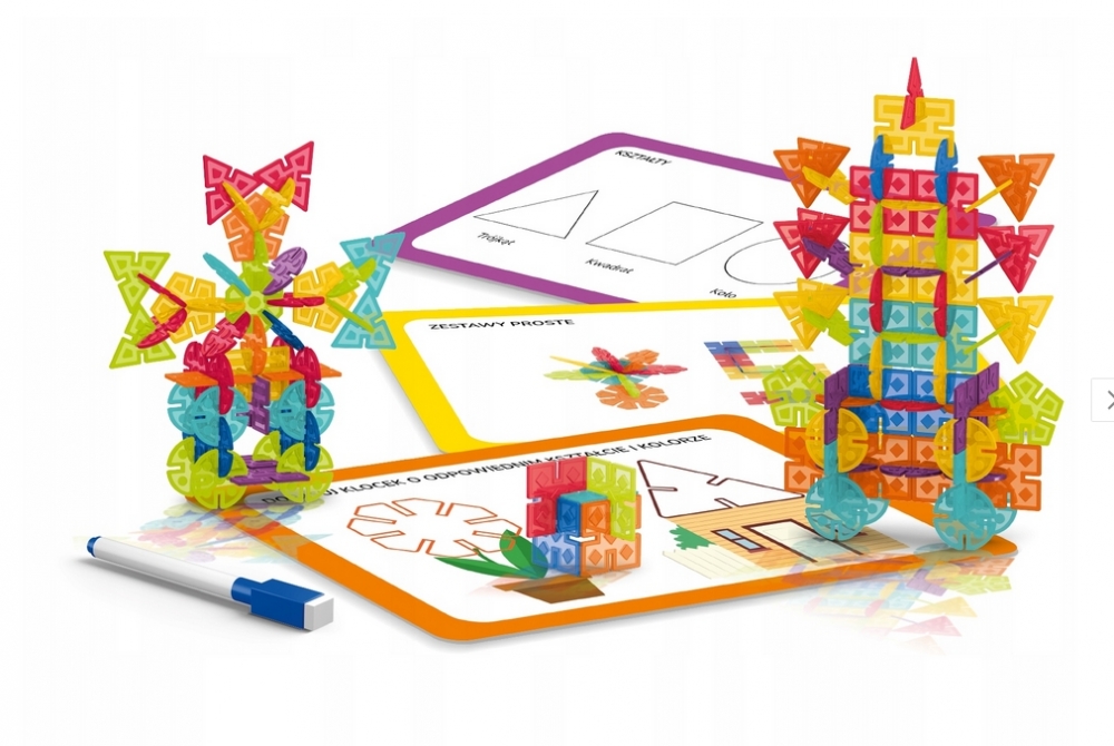- Rozwijają kreatywność: Sześć różnych kształtów i siedem kolorów pozwalają na tworzenie skomplikowanych budowli.