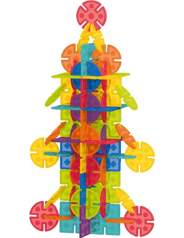 Ten wielokolorowy zestaw zawiera 224 elementy, które pozwalają dziecku tworzyć różnorodne konstrukcje. Klocki wspierają rozwój spostrzegawczości, umiejętności liczenia i motoryki u dzieci.