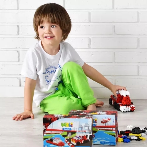 Który z dzieci nie marzy, aby zostać strażakiem? 160 klocków zawartych w zestawie MELI FIRE BRIGADE pozwolą na zbudowanie aż czterech pojazdów ratunkowych! Na odkrycie i złożenie czekają: wóz strażacki oraz mniejszy łazik, motorówka i samolot ratunkowy. Książeczkę z dokładnymi instrukcjami jak je zbudować krok po kroku znajdziesz wewnątrz opakowania. Gama kolorów z przewagą czerwieni przypomina nam o tym, że to pojazdy ratunkowe. Poza standardowymi płaskimi elementami zestaw wzbogacono trzema nowymi częściami, bez których niemożliwe byłoby stworzenie pojazdów. Z tym zestawem zabawa nigdy się nie nudzi – 4 in 1 oznacza, że możesz jednorazowo zbudować jeden pojazd z użyciem wszystkich elementów. Dla dzieci od 3. roku życia.