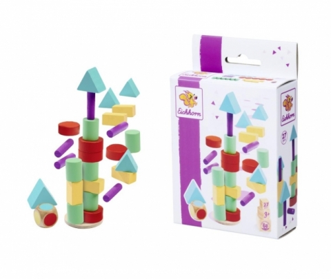 Różne kształty i kolory klocków do ustawiania, kostka z kolorami, 27 elementów, brzoza, 3l+