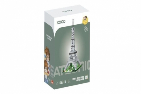 Klocki przedstawiają wieżę Eiffla. Zestaw składa się z 538 elementów.