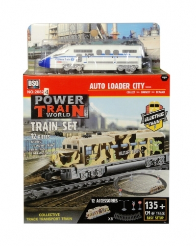 Plastikowa kolejka wraz z torami (8) i znakami drogowymi (3). Zestaw składa się z 13 części. Tory mają 135 cm długości. Kolejka świeci kolorowym światełkiem. Zabawka działa na baterie typu AAA. Baterie nie są załączone do zabawki. Produkt zapakowany w kartonowe opakowanie z przezroczystym kloszem. Podane wymiary są wymiarami opakowania. Zabawka dla dzieci od 4 lat.