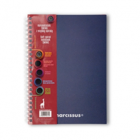 Możesz wybrać, który z kolorów okładki bardziej Ci odpowiada i zacząć robić notatki z czerwonej lub niebieskiej strony lub wykorzystać kołonotatnik do prowadzenia zapisków z dwóch różnych przedmiotów. Miękka spirala delikatnie ułoży się pod ręką i sprawi, że pisanie będzie zawsze wygodne, niezależnie od tego, czy położysz kołonotatnik na stole, czy na oprzesz go o kolano. Silikonowa spirala jest tak elastyczna, że możesz spakować kołonotatnik do torebki lub plecaka bez obaw, że porysuje lub uszkodzi znajdujące się tam przedmioty. Nasz Swing zawiera 80 kartek w kratkę z perforacją, która pozwoli wyrwać kartkę bez nieestetycznie poszarpanych brzegów.