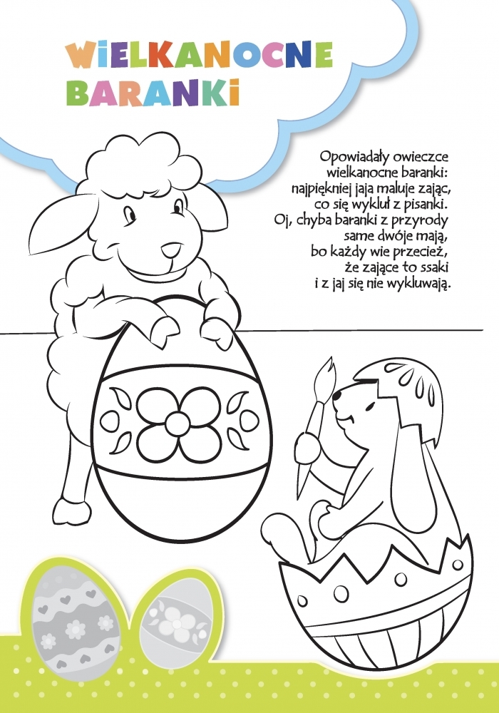 Sięgając po tę książeczkę, rozbudzisz u swojego dziecka artystyczne pasje i zachęcisz je do twórczego spędzania czasu. Każdy przedszkolak z zapałem przystąpi do kolorowania pisanek i wielkanocnych obrazków, ćwicząc przy tym precyzję ruchów i rozwijając wyobraźnię. Kolorowe ilustracje i proste polecenia sprawią, że zabawa będzie przyjemna i dostosowana do możliwości najmłodszych.