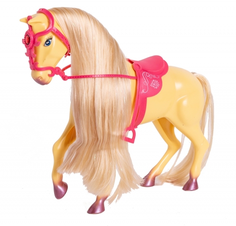 W zestawie szczotka, która można wyczesać tę piękną, długą, jasną grzywę.