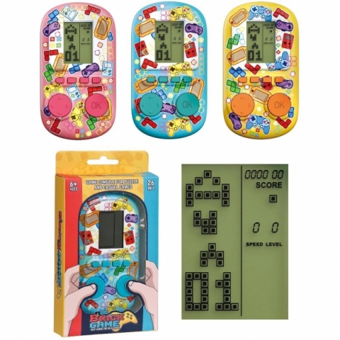 Klasyczna Konsola "Brick Game" 26w1 w Bajecznych Kolorach - Wciągająca Zabawa dla Każdego! Przywróć wspomnienia z dzieciństwa lub wprowadź swoje dziecko w świat klasycznych gier z naszą konsolą "Brick Game"! Ta kompaktowa i wciągająca zabawka oferuje 26 wariantów popularnych gier logicznych, zapewniając godziny świetnej rozrywki w podróży, w domu czy gdziekolwiek zechcesz. Tym razem w jeszcze bardziej atrakcyjnych, żywych kolorach! Cechy produktu: 26 Gier w Jednym: Ciesz się różnorodnością wariantów klasycznej gry w spadające klocki oraz innymi prostymi, ale wciągającymi grami logicznymi, które rozwijają spostrzegawczość i refleks. Wesołe, Kolorowe Wzory: Konsola dostępna jest w trzech fantastycznych, jaskrawych wariantach kolorystycznych (różowy, niebieski, żółty), z wesołymi grafikami przedstawiającymi elementy gier, co czyni ją jeszcze bardziej atrakcyjną dla dzieci i młodzieży. Łatwa w Obsłudze: Intuicyjne przyciski sterujące i przejrzysty ekran LCD sprawiają, że konsola jest prosta w obsłudze zarówno dla dzieci, jak i dorosłych. Kompaktowa i Przenośna: Niewielkie rozmiary sprawiają, że konsola z łatwością zmieści się w plecaku czy kieszeni, idealna do zabawy w podróży, podczas czekania czy w przerwie od nauki. Rozwija Umiejętności: Gra stymuluje myślenie strategiczne, koordynację wzrokowo-ruchową oraz zdolność szybkiego podejmowania decyzji. Dla Wszystkich od 6 Roku Życia: Rekomendowany wiek 6+ sprawia, że jest to doskonały wybór dla dzieci w wieku szkolnym, ale także dla dorosłych, którzy z sentymentem wspominają klasyczne konsole. "Best Choice for Relaxation": Jak sugeruje napis na opakowaniu, to świetny sposób na relaks i odstresowanie. Wielkość opakowania: 17x11x3 cm Zawartość opakowania: 1x Konsola do gier "Brick Game" (kolor wysyłany losowo, chyba że podano inaczej) Specyfikacja: Wiek: 6+ Zapewnij sobie lub swojemu dziecku mnóstwo zabawy i wróć do korzeni gier wideo z naszą klasyczną konsolą "Brick Game" w nowej, kolorowej odsłonie!