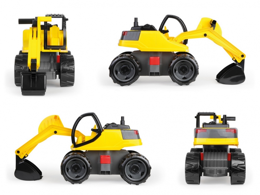 Koparka Lena Giga Trucks żółto-czarna o nowoczesnym designie, w realistycznej kolorystyce, z dużą łopatą oraz ergonomicznie ukształtowanym uchwytem do obsługi łopaty. Długość 67 cm. Nadaje się do użytku wewnątrz i na zewnątrz.