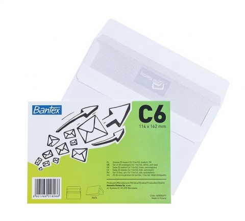Koperta Biała Bantex C6 SK, 50 szt. - biała