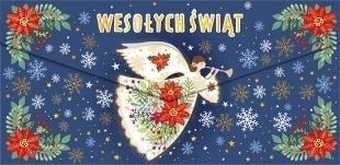 Ozdobna koperta na pieniądze, złocona i tłoczona. W zestawie wkładka z życzeniami.