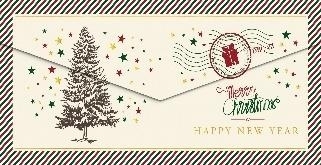 Ozdobna koperta na pieniądze, złocona i tłoczona. W zestawie wkładka z życzeniami.