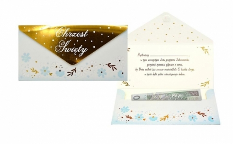 Koperta podarunkowa jest eleganckim sposobem na podarowanie bliskiej osobie banknotu lub karty podarunkowej. Koperta jest kolorowa i uszlachetniona metalizowaną folią hot-stamp, jest solidnie wykonana i wyposażona w rzep, co umożliwia jej wielokrotne otwieranie i zamykanie. Koperta zawiera życzenia w środku.