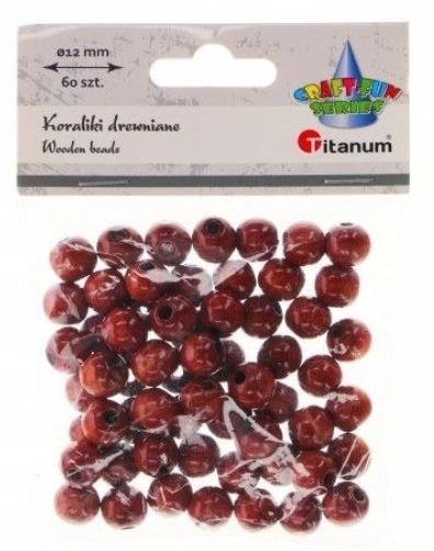 Koraliki drewniane okrągłe O12mm otwór O3mm lakierowane brązowe drewno 60szt.