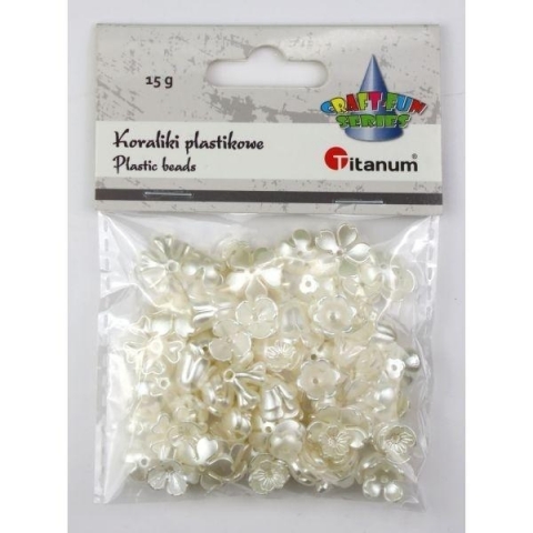 Koraliki plastikowe kwiatki białe perłowe 15g