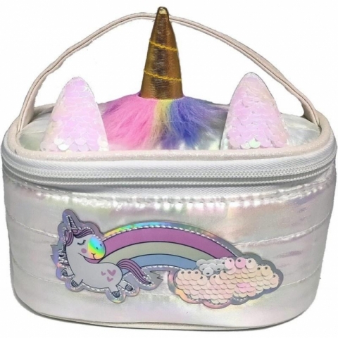 Kosmetyczka z jednorożcem obszyta puszystym materiałem z zamkiem błyskawicznym. Wygodna i pojemna,można ją zabrać w podróż, na wycieczki oraz do codziennego użytku. Wygodna do przenoszenia dzięki dopasowanej rączce.