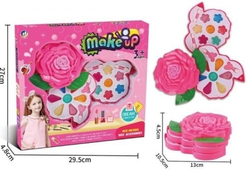 Odkryj świat kreatywności z zestawem do makijażu "Make Up"! Ten uroczy zestaw został zaprojektowany z myślą o małych artystkach od 3. roku życia. Znajdziesz w nim pięknie zaprojektowane paletki w kształcie rozkwitającej róży. Obie paletki kryją w sobie bogactwo kolorowych cieni do powiek, błyszczyków i innych bezpiecznych dla skóry kosmetyków. Dołączone akcesoria, takie jak pędzelki, szminki i lakier do paznokci, sprawią, że zabawa w stylistkę będzie jeszcze bardziej realistyczna i ekscytująca. Zestaw "Make Up" to doskonała propozycja na prezent, który rozwija wyobraźnię, zdolności manualne i zachęca do kreatywnego spędzania czasu. Idealny do domowych zabaw, przyjęć urodzinowych i niezapomnianych chwil z przyjaciółmi.