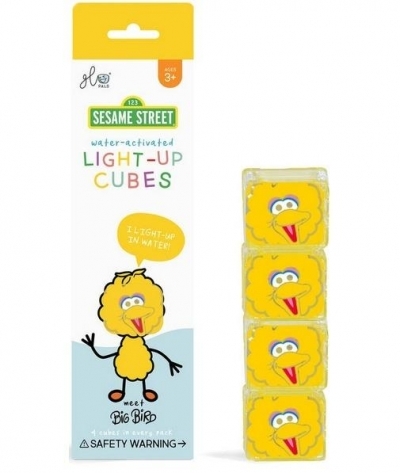 Glo Pals zestaw 4 kostek sensorycznych świecących w wodzie Wielki Ptak z Ulicy Sezamkowej. Ta wyjątkowa edycja świeci aż w 2 kolorach, płynnie przechodząc przez kolor żółty i pomarańczowy.