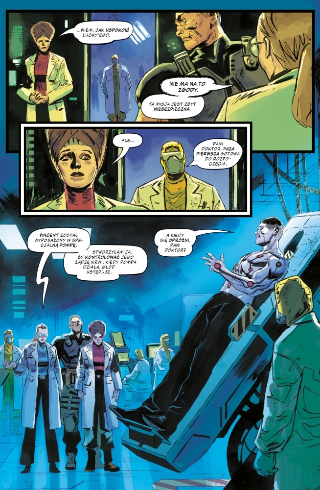 Koszmarne Komando zapuszcza się w najstraszniejsze zakątki uniwersum DC, gdzie odkrywa makabryczne tajemnice i szokujące prawdy. W tej mrożącej krew w żyłach opowieści powietrze jest gęste od strachu, pazury są gotowe do ataku, kły błyszczą, a krew leje się strumieniami. Czy potwory z Koszmarnego Komanda to tylko ohydne maszyny do zabijania, czy może ostatnia nadzieja ludzkości? Odpowiedź kryje się w cieniu. Scenariusz komiksu napisał David Dastmalchian („Count Crowley”, „The Suicide Squad”, „Late Night with the Devil”).