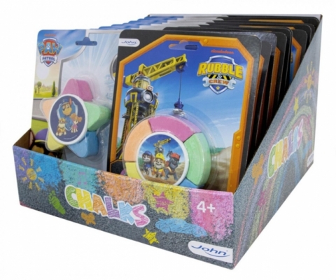 Kreda licencyjna Psi Patrol i Rubble, kredowe koło , 2 rodzaje n5 kolorowych kred umieszczonych na kółku na licencji Psi Patrol, na blistrze, 24 szt w displayu, 4l+