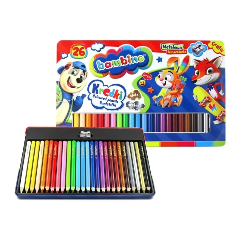 Kredki Bambino drewniane, 26 kolorów + temperówka