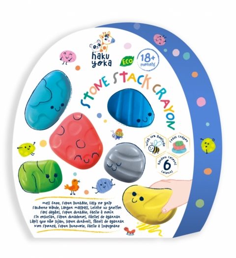 - Opakowanie zawiera 6 kredek w kształcie kamieni.