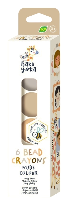 Eko kredy wykonane są z 10% wosku pszczelego, a ich opakowania wykonane są z papieru FSC. Nie pozostawiają plam. Opakowanie zawiera 6 kredek koralików w ziemistych kolorach.
